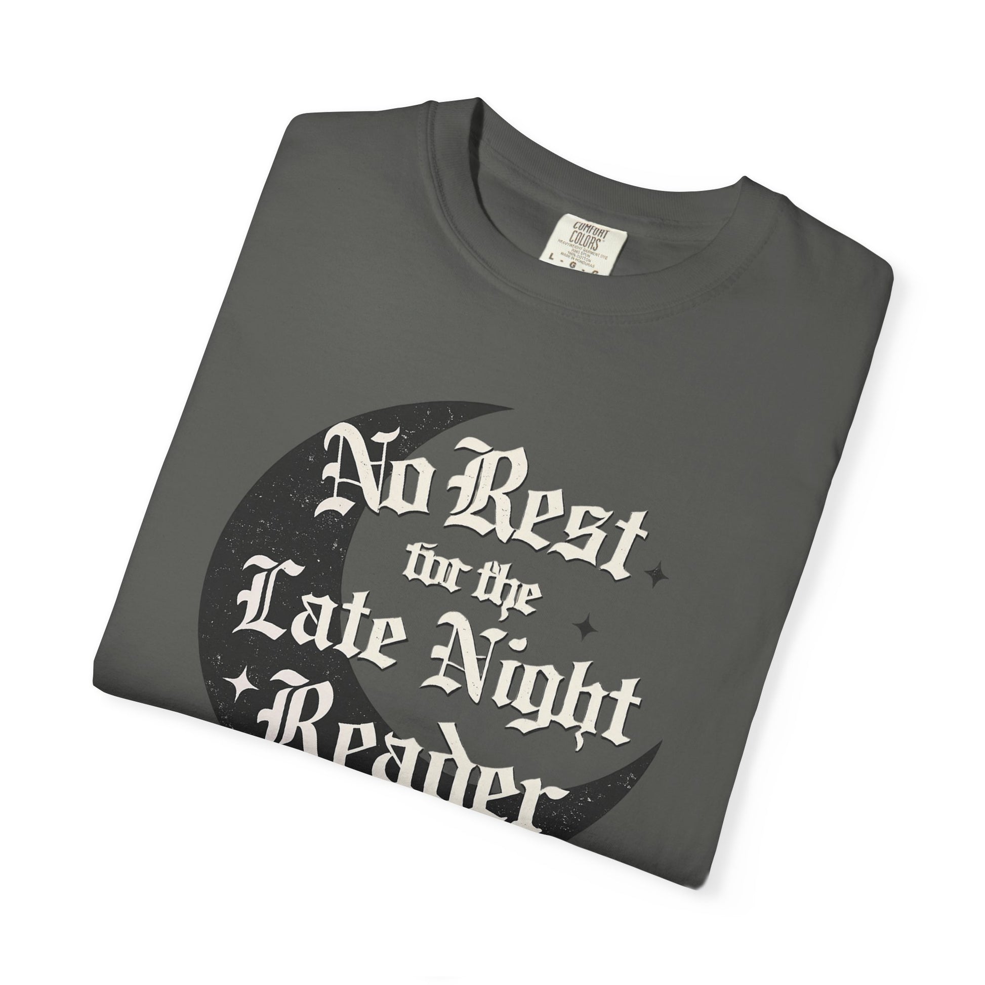 The Late Night Reader Tee was made for moonlit pages, quiet streets, and stories that refuse to let you sleep. Featuring bold gothic lettering wrapped in a crescent moon design, this piece blends dark academia mood with modern streetwear edge.